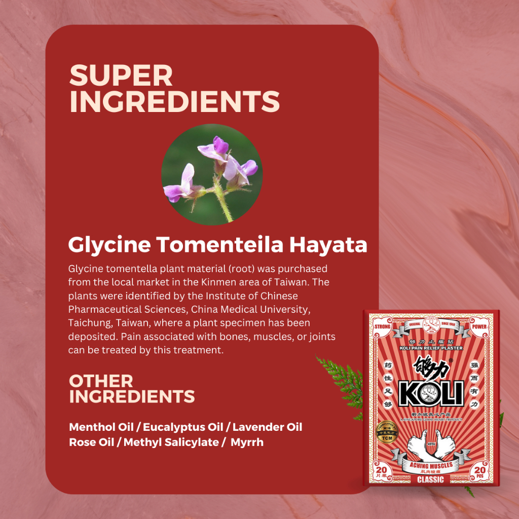 *All KOLI plasters are made from natural herbal ingredients using a high-tech modern manufacturing process, it is safe and reliable to use every day without side effects. KOLI Plasters is a wholly Singapore-owned brand.
