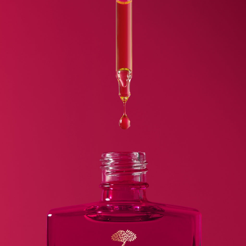 Take a small drop of serum or half a pipette, spread the texture lightly over your fingers, and then apply to your face with both hands, keeping them flat, always working outwards from the centre (avoiding the eye contour area). Don't forget your neck and top of the décolleté.