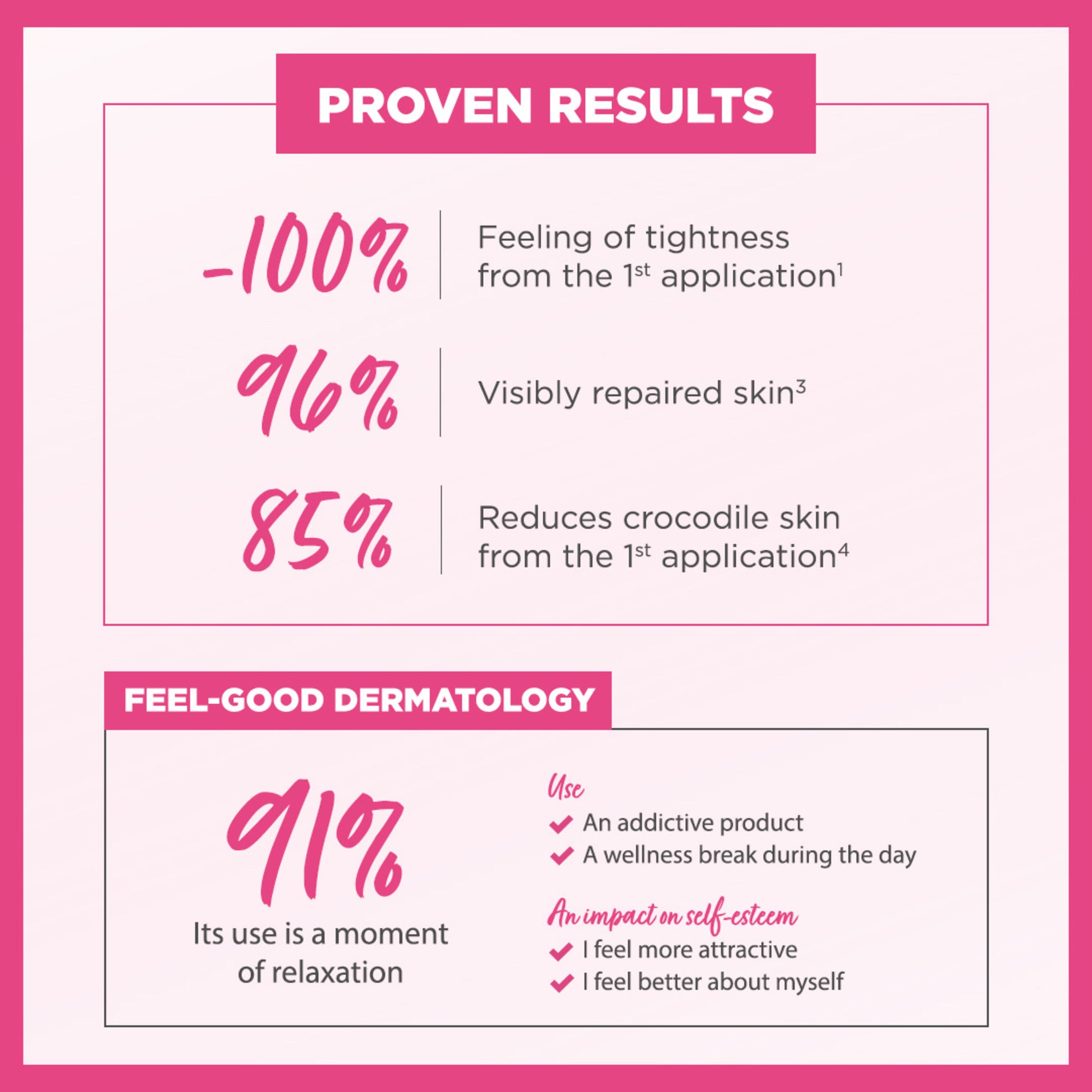 ULTRA-MOISTURIZING Comforting Body Balm, rich with shea butter and beeswax, continuously nourishes for 48 hours¹. Our new product halves dryness from the first application². The body balm reduces the crocodile-skin effect while protecting dry to very dry skin from external aggressors (hard water, cold, wind). The comforting melting texture of our moisturizing balm is non-greasy. It envelops the skin in a delicately scented veil and penetrates instantly for a moment of well-being for the whole family from 3 years old. With 94% ingredients of natural origin, our ULTRA-MOISTURIZNG Comforting Body Balm leaves your skin softer and suppler, as if repaired. Tested under dermatological control.