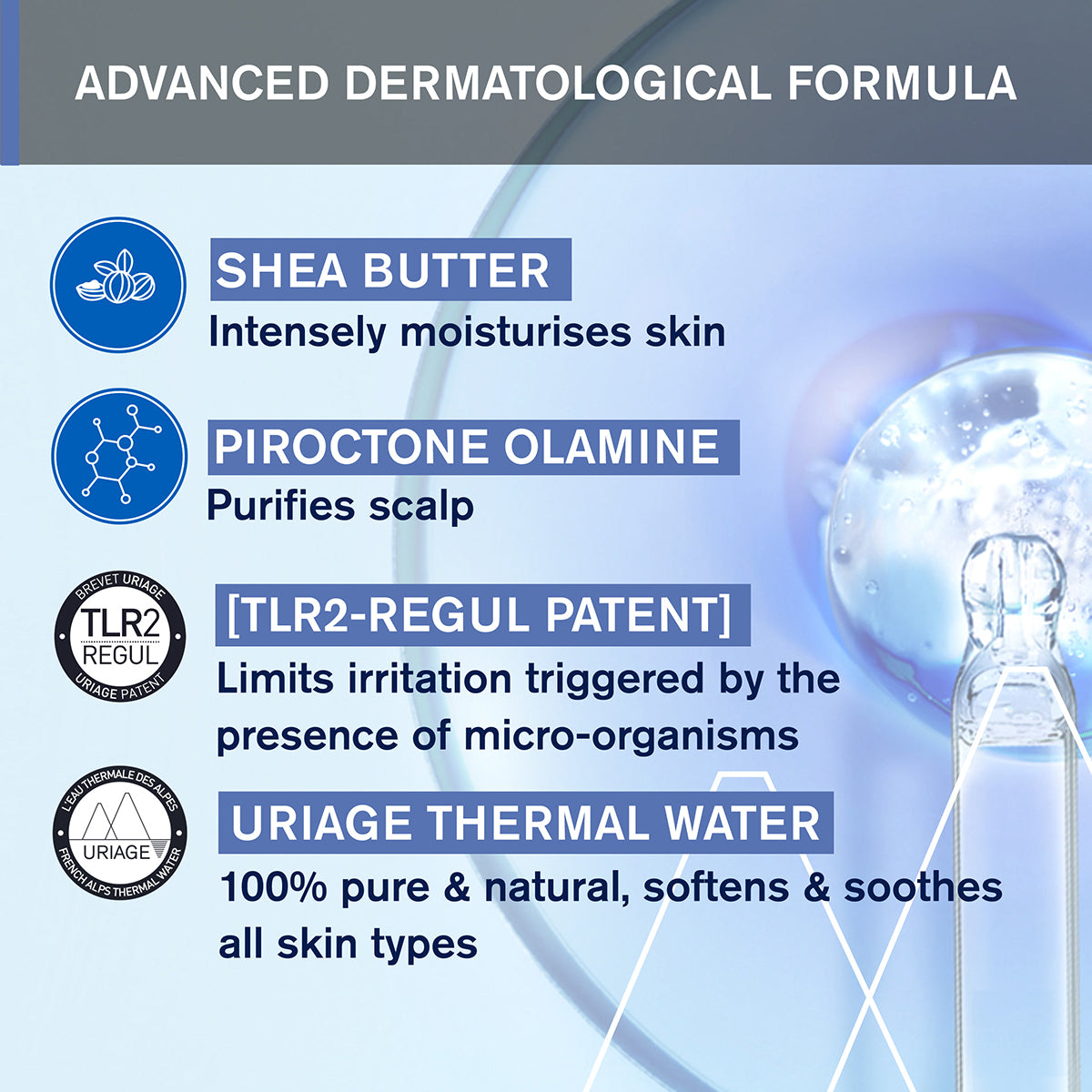 Enriched with Uriage Thermal Water, this product soothes and calms scalp irritations.