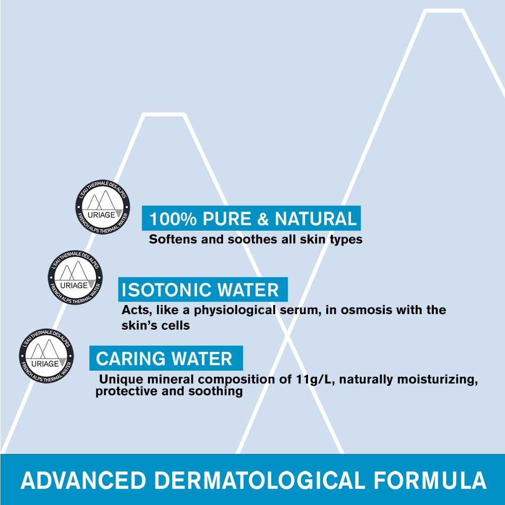 Uriage Thermal Water is a skincare water for daily use, a powerful treatment formulated with trace elements and mineral salts, a source of radiance for your skin. it offers unique moisturizing benefits. Its high content of calcium and magnesium salts also soothes sensitive skin.