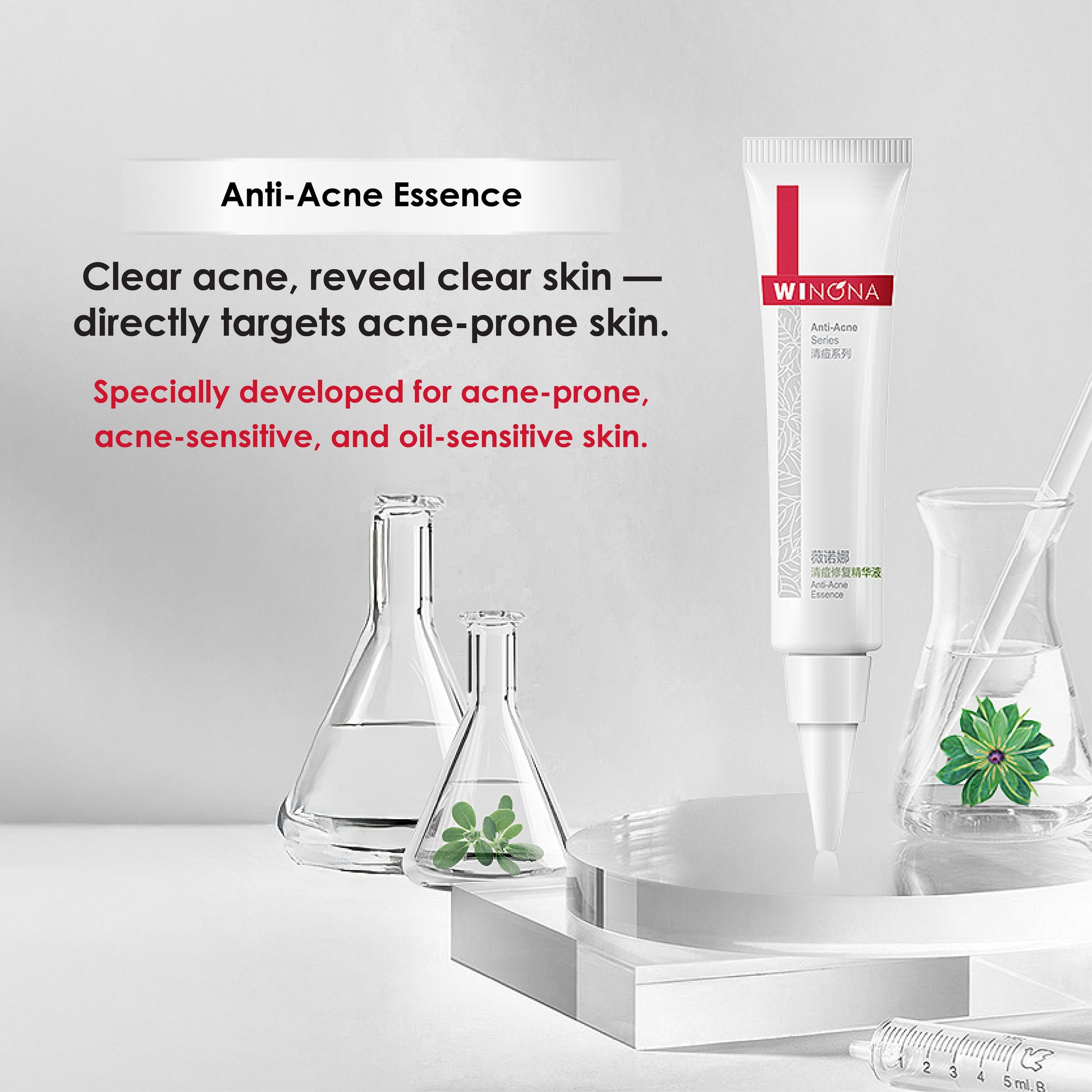 Specially formulated for acne-prone and sensitive skin, Winona Anti-Acne Essence penetrates deep into pores to reduce inflammation, control excess oil, and prevent recurring breakouts—while improving skin clarity and texture.