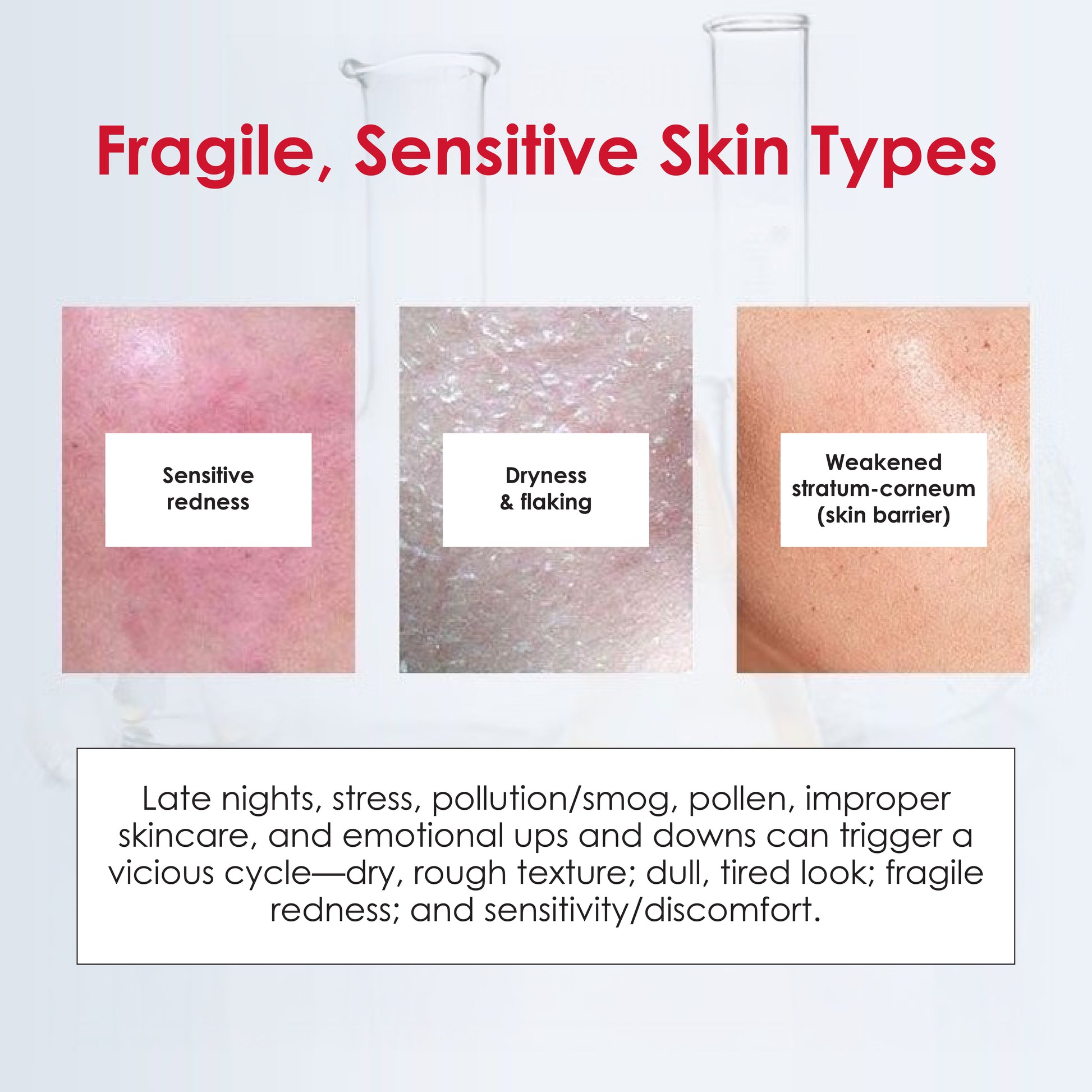 - Lightweight, fast-absorbing texture ideal for fragile skin